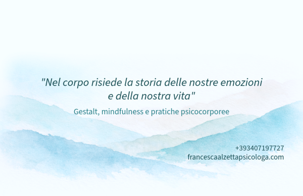 Attualmente mi sto specializzando in psicoterapia umanistico-psicocorporea: un approccio che integra mente, corpo e neuroscienze in un lavoro profondo e rispettoso dei tempi di ognuno.