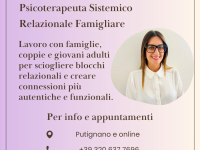 Ricevo su appuntamento a Putignano (BA) e online.