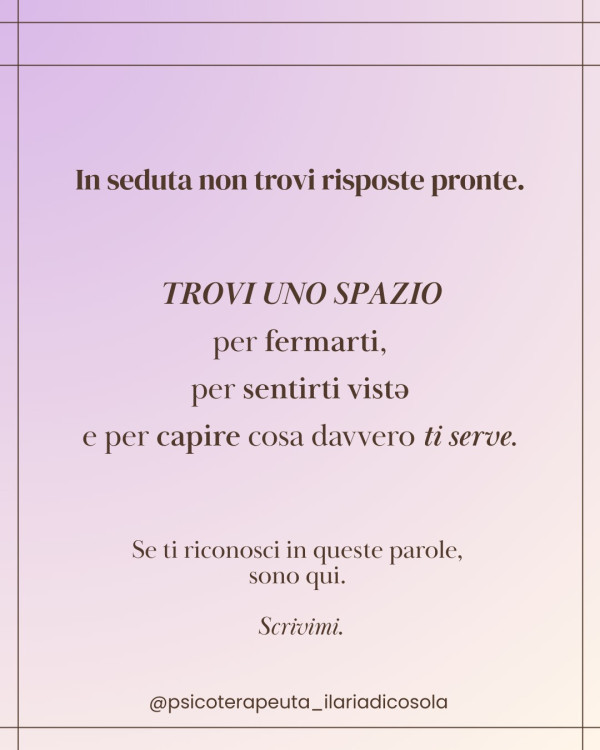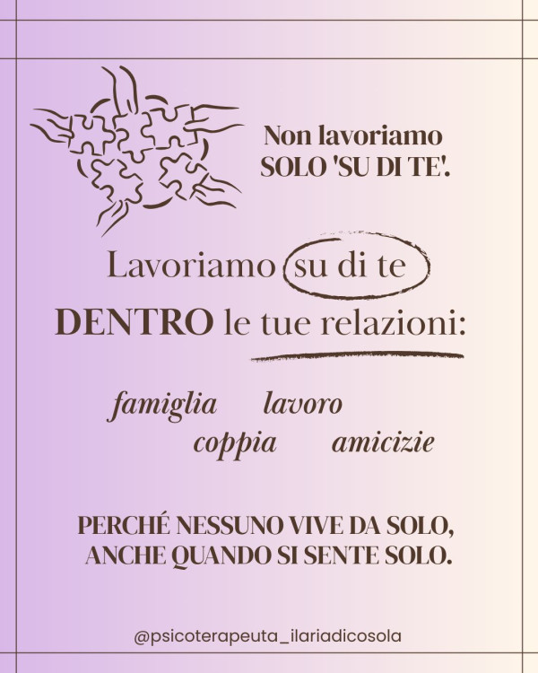 La terapia relazionale aiuta a costruire questo spazio, insieme dove PUOI ESISTERE, SENZA FILTRI.”E tu, ti sei mai sentito ascoltato davvero ?
